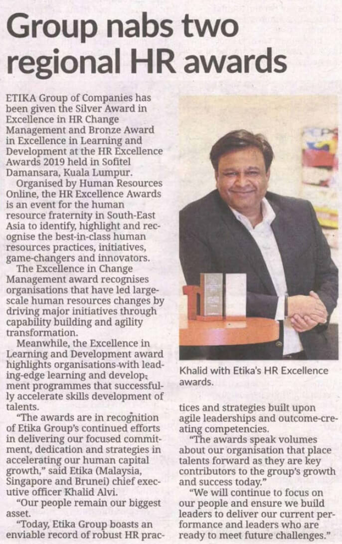 Utusan Malaysia - Etika Wins Global Best Employer Awards 2 Years In A Row