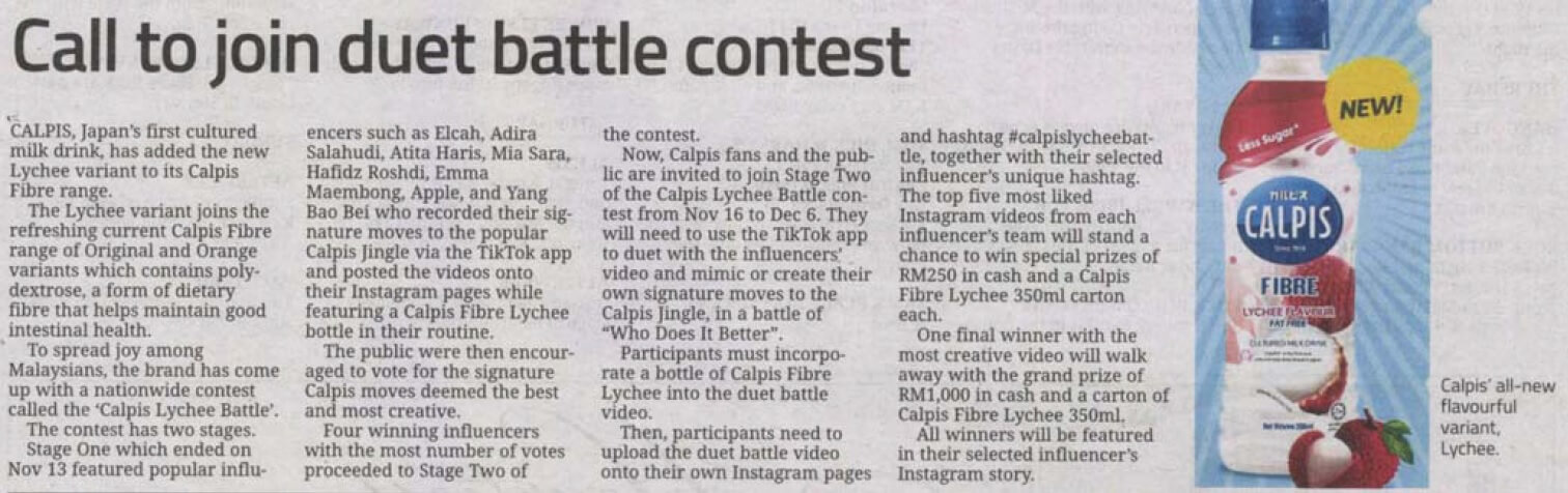 Sin Chew - Calpis Fibre-Up Challenge Contest